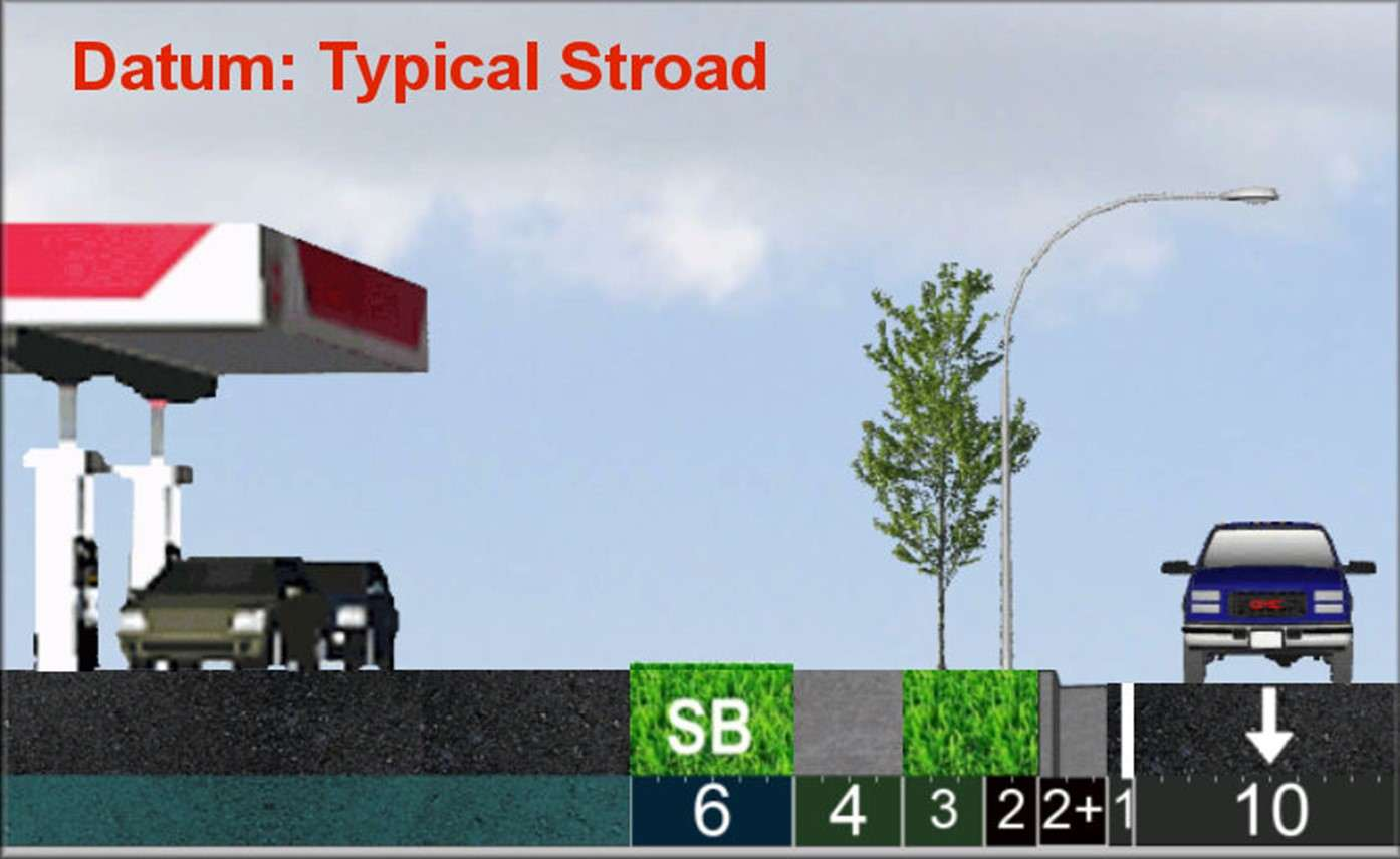 Choose a best-fit cell then "Done" For contexts that will maintain low residential densities and modest Suburban commercial, a focus on higher speed may be appropriate. For areas with potential for General Urban and higher (T4-T6), ITE recommends slower streets with narrower lanes as per best practices for Boulevards, Avenues and Streets.