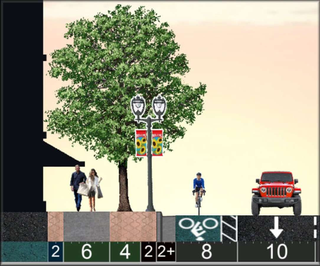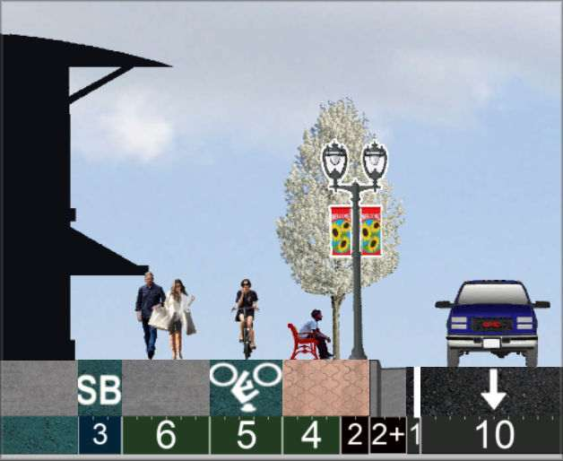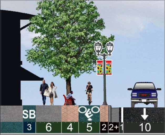 • F3 = Shoulder: Datum is "Wide, no parking" (F3 = 1). You will have parking w/trees & bulb-outs (F3 = .85)
