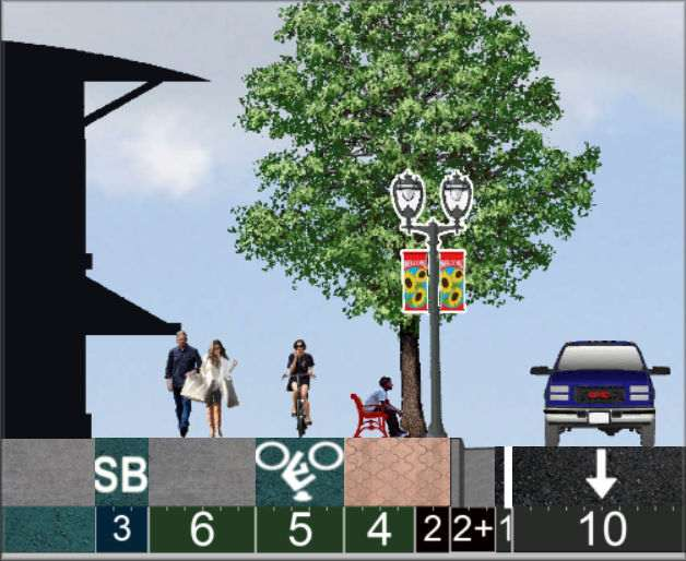 Buildings are encouraged to be within 5-ft of sidewalks. Significant residential.