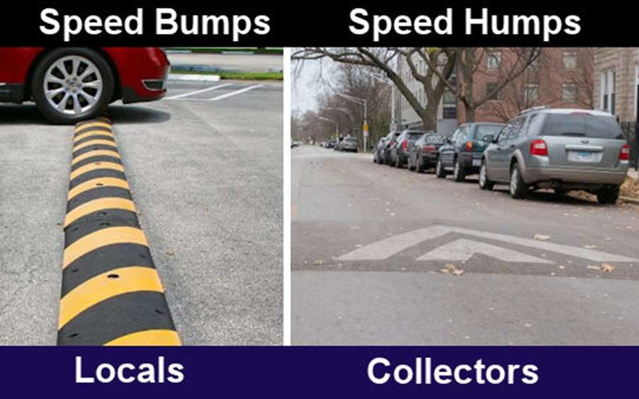 Roads are designed for higher speeds, while streets aim for lower speeds. Images below